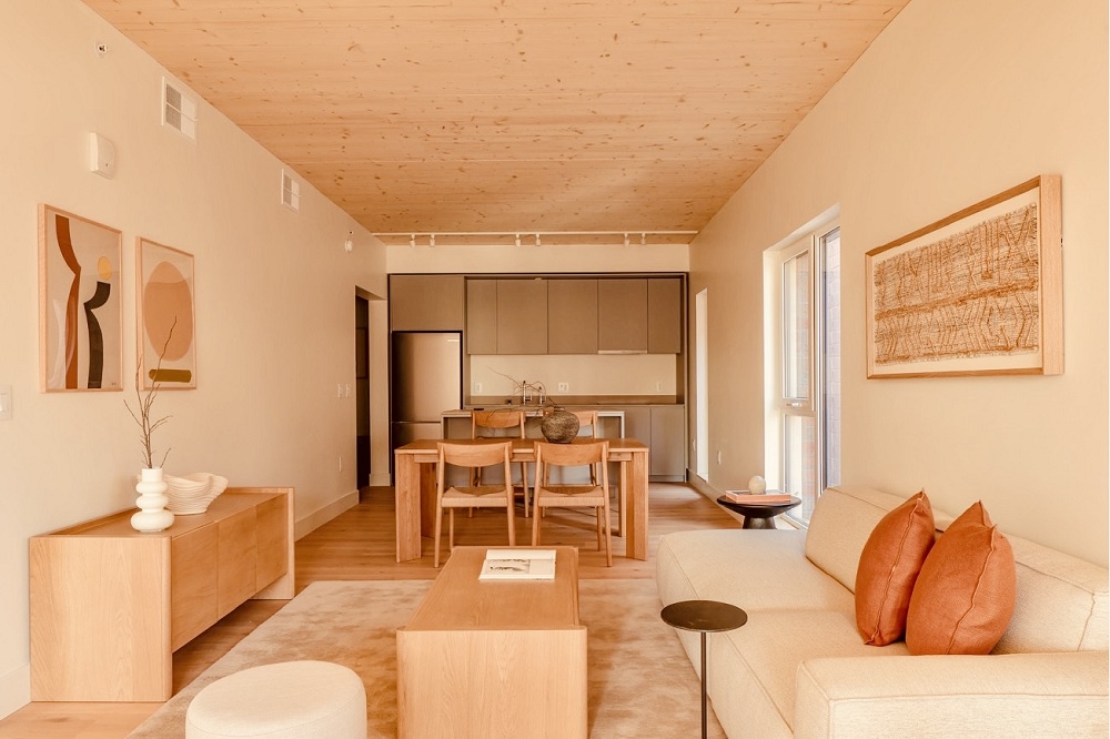 Located at 517 W. Main Street in downtown Madison, this modern apartment building offers a quiet, comfortable retreat just steps from State Street, the Capitol, UW–Madison, and local dining. Studio to two-bedroom homes feature bright interiors, floor-to-ceiling windows, and exposed natural wood ceilings overlooking greenery. Residents enjoy an on-site café by Copa Vida, work-friendly lobby, private backyard, smart climate control, high-speed Wi-Fi, keyless entry, and 24/7 security. Bike sharing, EV charging, and organic food delivery amenities make 517 W. Main an ideal blend of convenience, comfort, and downtown living.